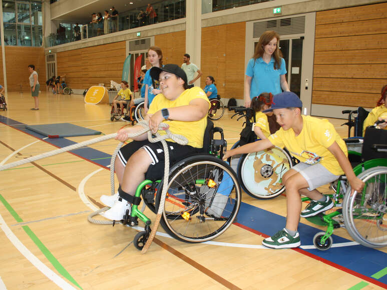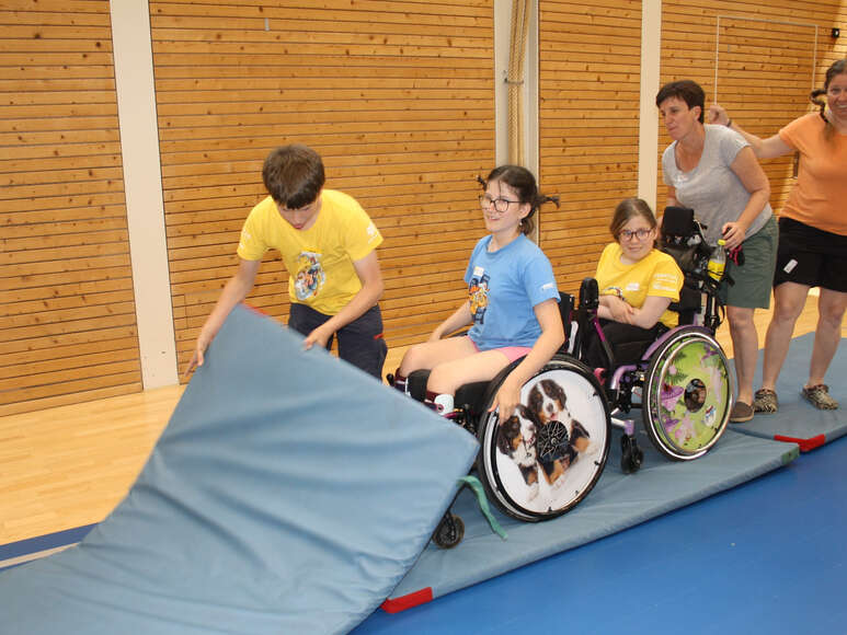 An verschiedenen Posten gab es knifflige und sportliche Aufgaben zu lösen. Zum Beispiel mit dem Rollstuhl über eine Rampe sausen, den Riesenball möglichst schnell herumkugeln oder sich das Pippi Langstrumpf-Kostüm aus dem Koffer schnappen. Natürlich waren alle Kinder mit den Superkräften von Pippi ausgerüstet: Mut, Stärke, Fairplay und Begeisterung. Das hat Spass gemacht!